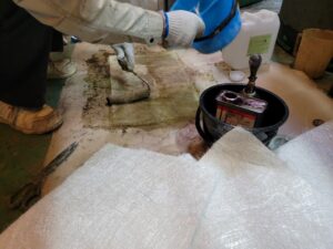 汚れ、油、異物が付着した状態でFRPをライニングすると剥離の可能性があがります。