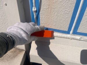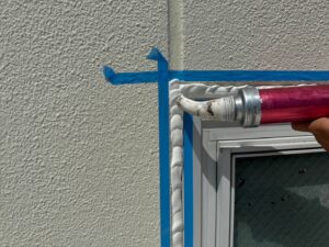 プライマー塗布後シーリングを打っていきます。この時周りをシールで養生します。