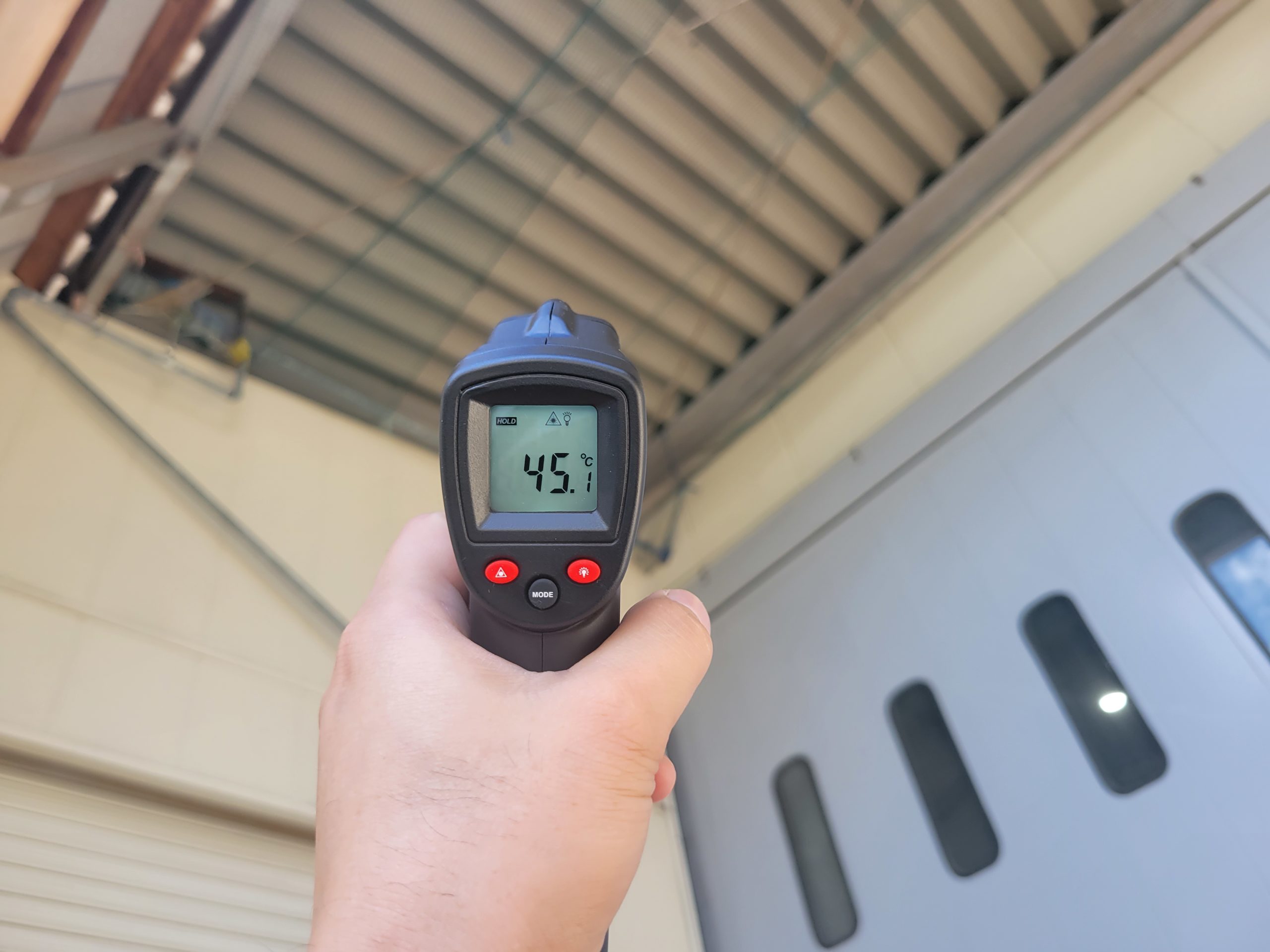 遮断熱塗料を用いた屋根、外壁塗装工事も請け負います。近年では地球温暖化が進行し、真夏日の工場での労働は熱中症を引き起こすリスクが極めて高くなっています。遮断熱塗料を塗装すると、工場内の気温が下がり、また併せて労働環境の改善や光熱費の削減にもつながります。